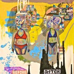 I asked Ben to talk about what and who inspires his creativity. “I draw from a lot of things and other artists as well, you can probably see elements of Picasso and Jean-Michel Basquiat and I try to include various layers in my work. Mass media imagery has also taken a role in my work. I like it when the viewer creates a story out of the piece,” he said.