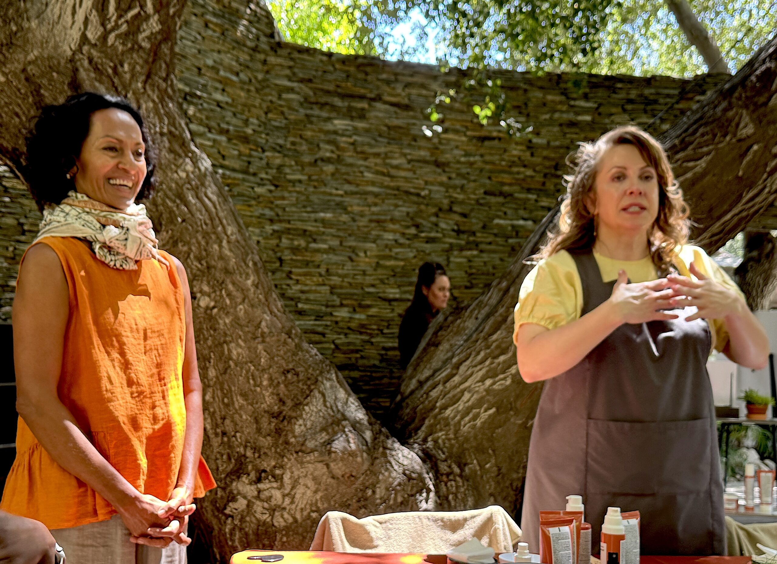 “I like to take the words ‘self care’ and ‘ritual’ and expand them into what I call ‘soul care,’ because what some consider self care has become watered down,” explained Sundaram (left), on forming healthy habits to use the products in the most intentional way. “Ask yourself what’s the deepest, intentional, purposeful activity that you can do every day that makes us, as women and human beings, feel good. We’re not only taking care of our skin (on our face), but also our skin from the neck down. What you do on a daily basis, like skincare, matters over a long period of time as it does in the moment you apply it.”