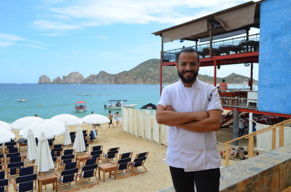 This casual, chic, and versatile retreat on Medano Beach has a bit of a Miami or Hamptons scene. Diners arrive by boat, bikini-clad swimmers frolic in clear blue waters and sun worshipers lay shoulder to shoulder on soft, warm white sand. Most just lounge, resting in white and navy deck chairs as they gaze at the shoreline.