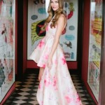 Sarah Seven too expressed a spirited playfulness in her collection of dreamy wedding day looks. Bringing out the fresh sexiness in a youthful Bride, the pretty in pink watercolor print on a high low gown is radiant as a rose.