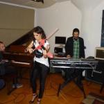 The stunning and talented Sarah Charness and her shockingly pink electronic violin are taking the world of Electronic DanceMusic (EDM) by storm. The virtuoso together with producers Disco Killerz (Matthew Danger and Uri Illuz) have married an old time disco sound with a modern spin that is wowing the dance-floor lovers in all the coolest clubs around the globe. From their bouncy ‘We Came To Party’ to their latest more sophisticated sound, ‘Grip’ featuring Jem Cooke, their mega talent shines through. Millennium Magazine was honored to be invited to the Dungeon Beach Recording Studio in Williamsburg, Brooklyn for a taste of the power team’s exciting live performance of ‘Grip’ that included the smokin’ DJ Lenny Emery along with the velvety vocalist iamlarcy and we were not disappointed.
