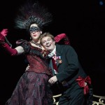 It’s all over the top glamour with wild and wonderful magical mix-ups of mistaken identity and mysterious partners in love. The music bubbles along inviting you to waltz away into a world where what is – is not quite what it appears to be. Swooning ladies, naughty chambermaids, dazzling duchesses, handsome swains all out celebrating and mischief-making as the century turns. Grand fun with a wicked sense of humor. A MUST for Holiday celebration. You will leave dancing on air, laughing, smiling at the joyous antics on stage and thinking to yourself, a masquerade ball just might be the ticket this New Year’s Eve.