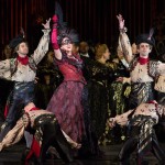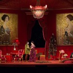 Set in 1899 Vienna, fin de siècle glamour pervades the production from the glossy red walls of the drawing room decorated with larger than life Gustav Klimt-like paintings to the Art Nouveau hinting at Art Deco black and gold ensembles of the New Year’s Eve entertainment, saucy, sexy chorus girls.