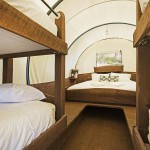 The variety of accommodations are split between several types of tents and custom-made wagons, all designed exclusively for the ranch. The Conestoga Wagon (similar to a Chuck Wagon) is set in a community circle for either a more private experience with friends and family or a larger more diverse community experience where you can get to know other campers — perfect for camping with kids. What ever your preference one can choose accommodations according to your needs of space and adventure.