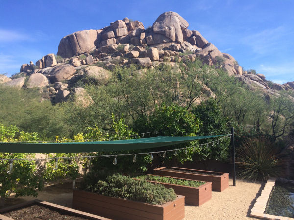 How their garden grows: The Boulders’ spa features the hotel’s in-house garden, which provides fresh fare for the property’s restaurants and can be an entertaining space in its own right.