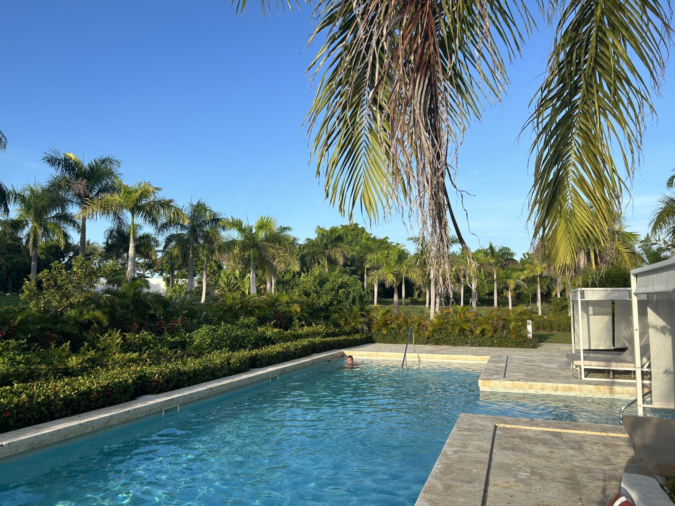 In the wake of a 40 million dollar renovation, Paradisus Palma Real Golf & Spa Resort re-emerged in December 2022 with 596 newly designed dwellings, including 152 spacious suites—including 58 swim-up suites–set aside for its new “The Reserve” tier. Other things shored up include 11 swimming pools, a world-class spa and fitness center, and restaurants and bars perfectly aligned with current culinary trends. Alvaro Sans, the chief architect for all Meliá Hotels International properties, interprets Colonial-Caribbean-influenced architecture with native organic materials such as raw coral and hardwoods for a look that communicates a tropical form of quiet luxury. The aesthetic is best described as modern Caribbean minimalism, with furnishing and accessories that are relatively simple, but polished and plush.
